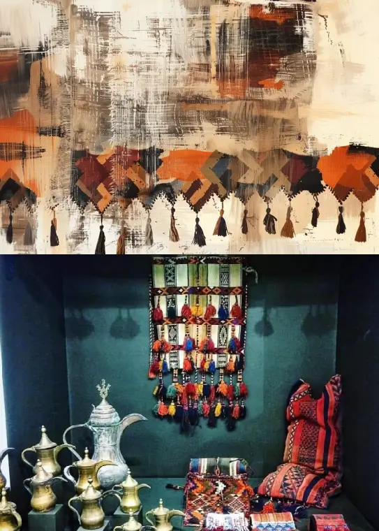 These invisible layers were woven into the collection through symbolism and abstraction. Warm earth tones honor the desert’s strength; deep blues and greens recall oases of life; fine details suggest the hands of artisans who shaped pottery, textiles, and woodwork across generations. Each artwork is not merely decorative—it is a keeper of memory.