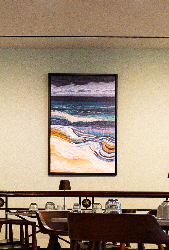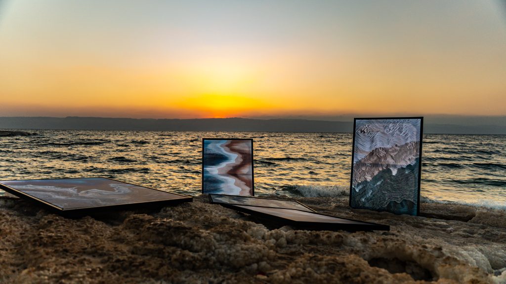 This collection is a poetic tribute to the timeless beauty of the Dead Sea. Each piece captures the shifting layers of salt, water, and earth translating the stillness of its shores and the depth of its waters into abstract forms. The flowing textures and mineral tones evoke both serenity and strength, reflecting the natural harmony that defines this extraordinary landscape. The collection invites guests to experience the essence of the Dead Sea through art.