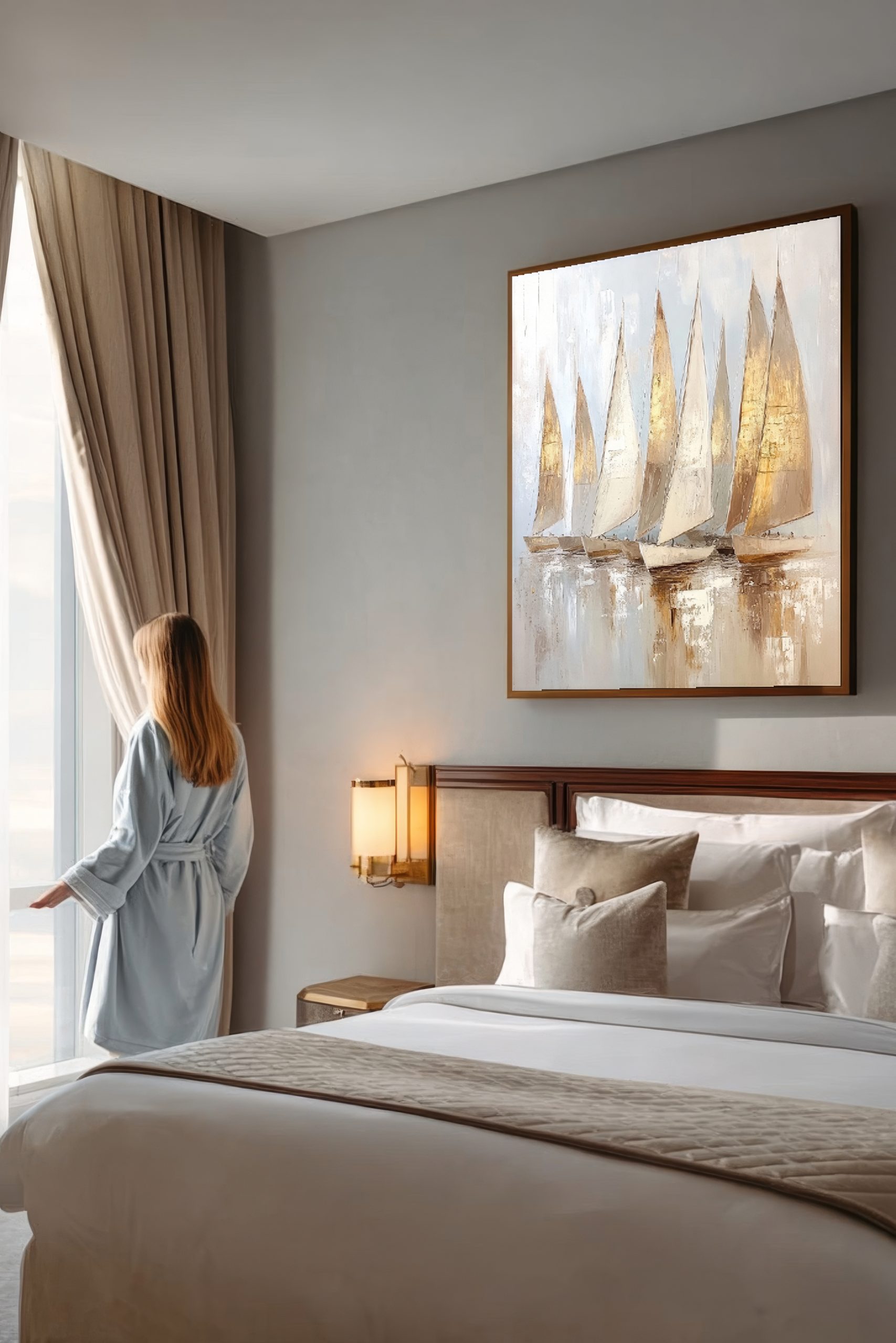 This collection captures the balance between modern sophistication and serene hospitality. Each artwork is designed to evoke a sense of calm and refinement, complementing the welcoming atmosphere of the hotel. Inspired by harmony and flow, the pieces blend subtle abstraction with timeless elegance, creating a tranquil visual experience that enhances every guest’s sense of comfort and belonging.